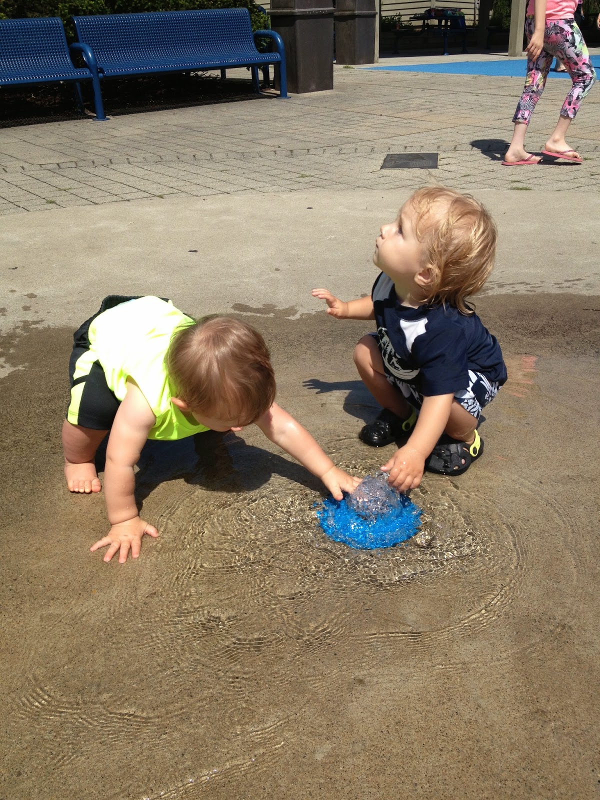 Hanging out at Sharon Woods with Mommy a lot this summer. They had a fun water fountain and puddle to play in!